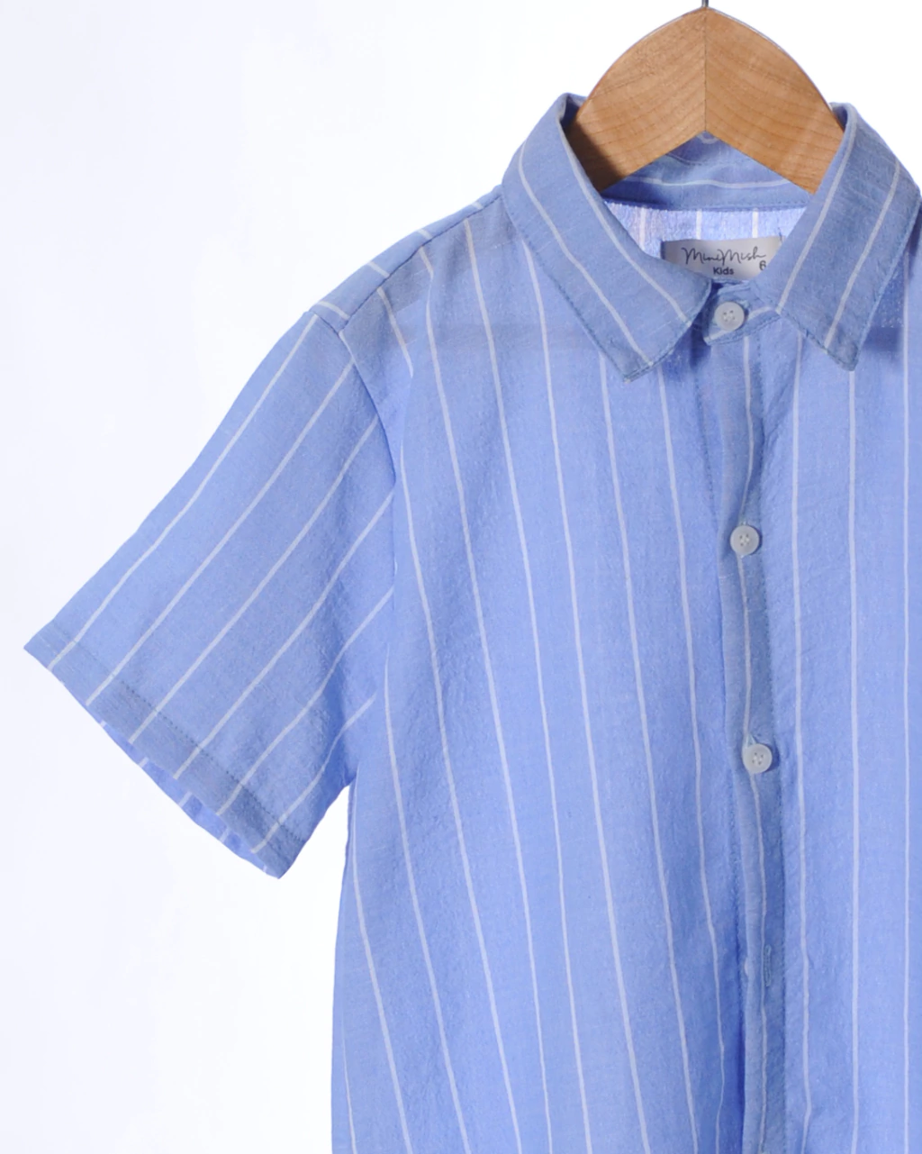 El look ideal para los chicos y chicas que buscan frescura y estilo en un solo outfit. Nuestro conjunto de lino rayado combina camisa y short, logrando una prenda versátil, cómoda y con un aire elegante pero relajado.